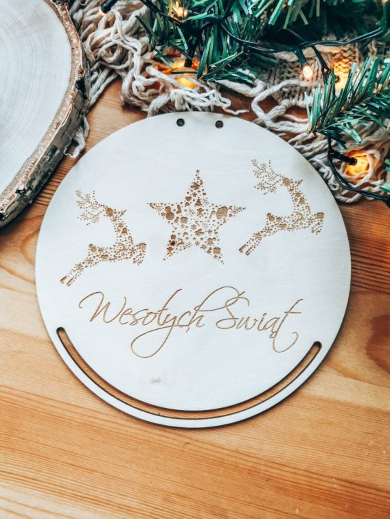 Drewniana baza z klimatycznym, świątecznym motywem świetnie sprawdzi się przy tworzeniu bożonarodzeniowych dekoracji - makramy, makatki, łapacza snów, kalendarza adwentowego czy innej ozdoby domu lub drzwi.
