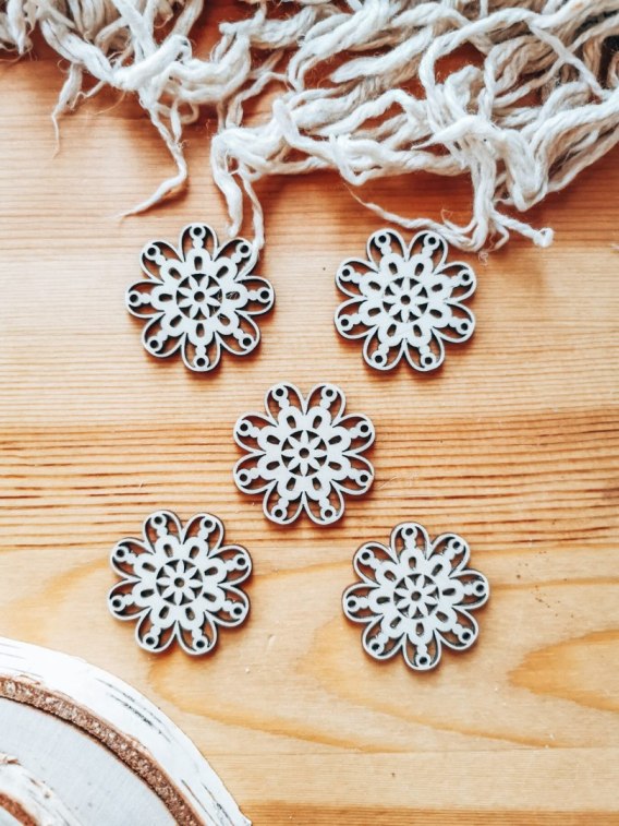 Drewniane ozdoby wykonane są ze sklejki grubości 3mm.