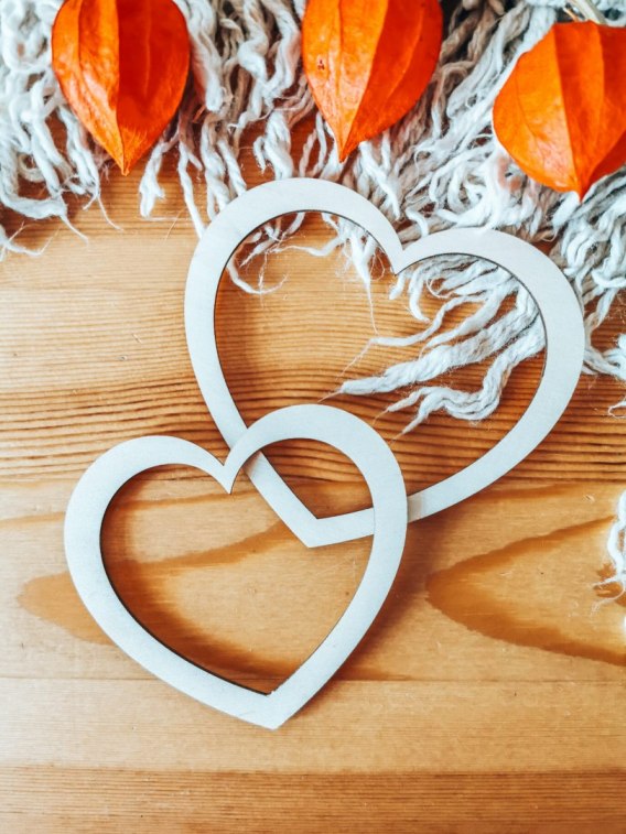 Baza obręcz - drewniane serce - zestaw 12cm + 10cm