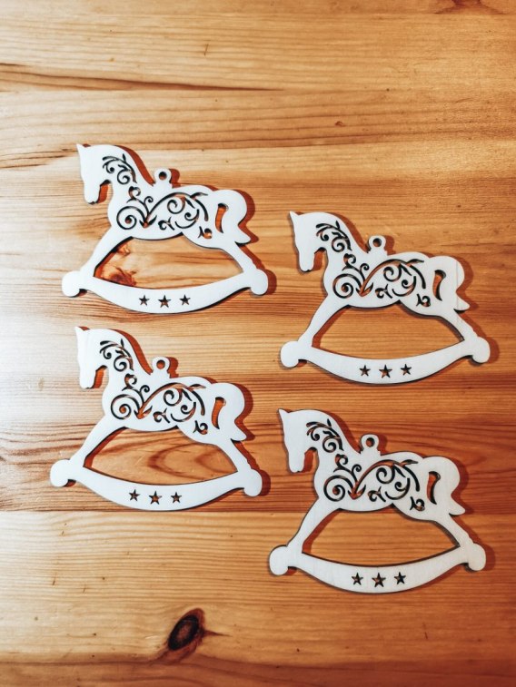 Drewniane ozdoby wykonane są ze sklejki grubości 3mm.