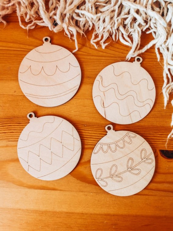 Drewniane bombki wykonane są ze sklejki grubości 3mm.
