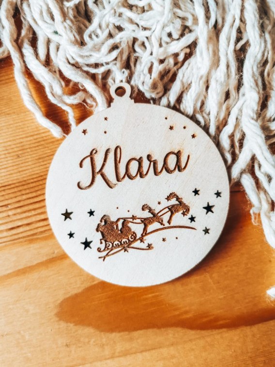 Drewniana bombka z dowolnym napisem. Personalizowana Bombka będzie piękną pamiątką Waszych wyjątkowych Świąt lub miłym prezentem dla bliskich.