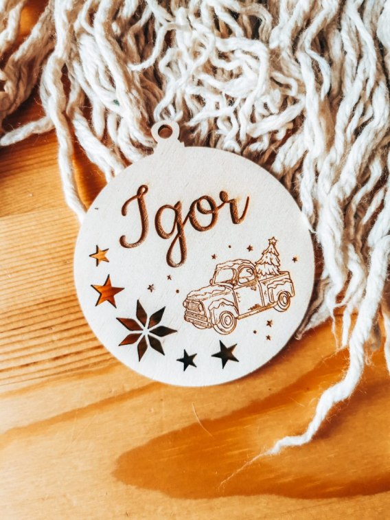 Drewniana bombka z dowolnym napisem. Personalizowana Bombka będzie piękną pamiątką Waszych wyjątkowych Świąt lub miłym prezentem dla bliskich.