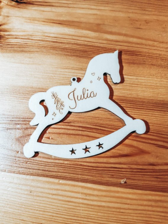 Bombka z imieniem - KONIK - Bombeczki 01 - - - (dowolny tekst, imienna, imienne bombki i zawieszki firmowe z LOGO, do makramy)