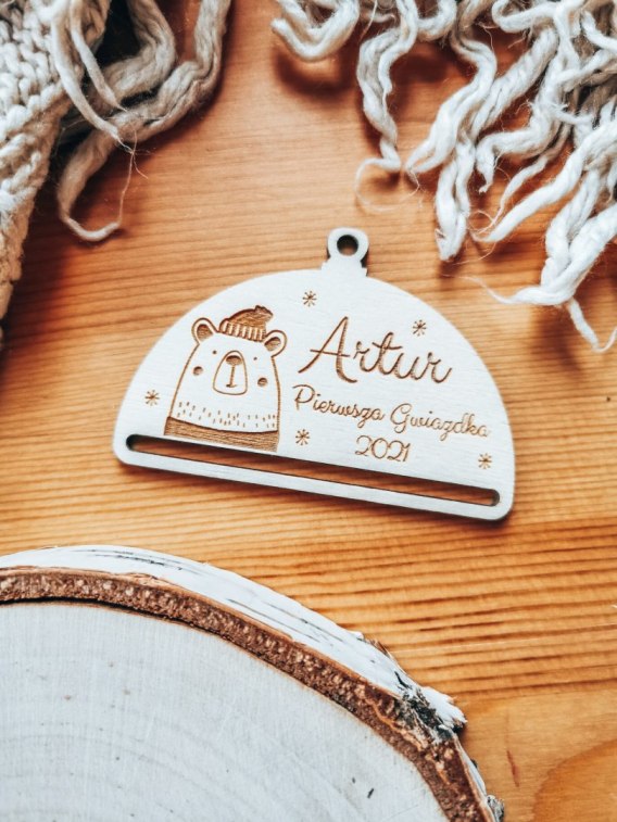 Drewniana bombka z dowolnym napisem. Personalizowana Bombka będzie piękną pamiątką Waszych wyjątkowych Świąt lub miłym prezentem dla bliskich.