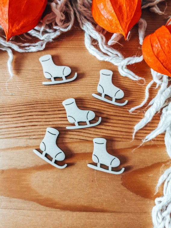 Dekor - ŁYŻWA 2-5cm (5-10 szt) - - - (dekorek, scrapka, skrapka, drewienko, skarpeta świąteczna)