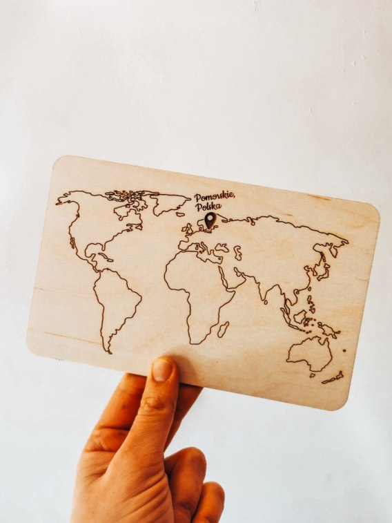 Dowolny tekst MAPA ŚWIATA z pinezką - tabliczka (1szt) 10cm/12cm/14cm