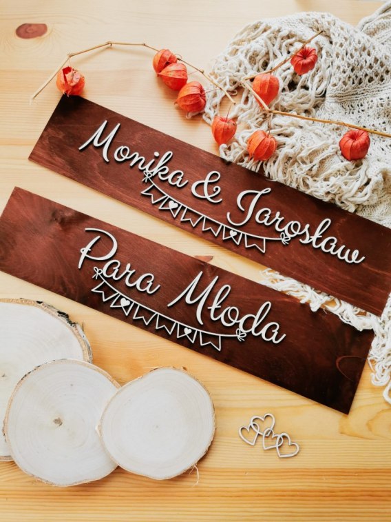 Tablice będą wyjątkowym i stylowym dopełnieniem dekoracji Waszego samochodu w stylu rustykalnym i boho (odcienie brązu) oraz w stylu glamour (biel i złoto/srebro).
