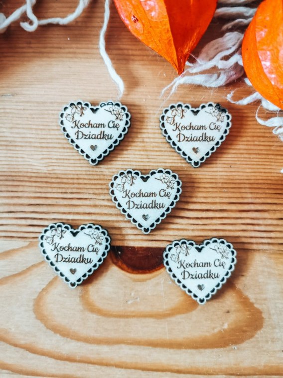 Drewniane serduszko z napisem, które możesz przykleić lub przywiesić do swoich prac. Polecamy jeśli tworzysz rękodzieło na prezent - m.in. ramki na zdjęcie lub ramki z aniołkiem, makramowe aniołki zawieszki, obrazy hand made, makramy i łapacze snów, kartki okolicznościowe wykonywane metodą scrapbooking, czy inne dzieła ręcznie robione.