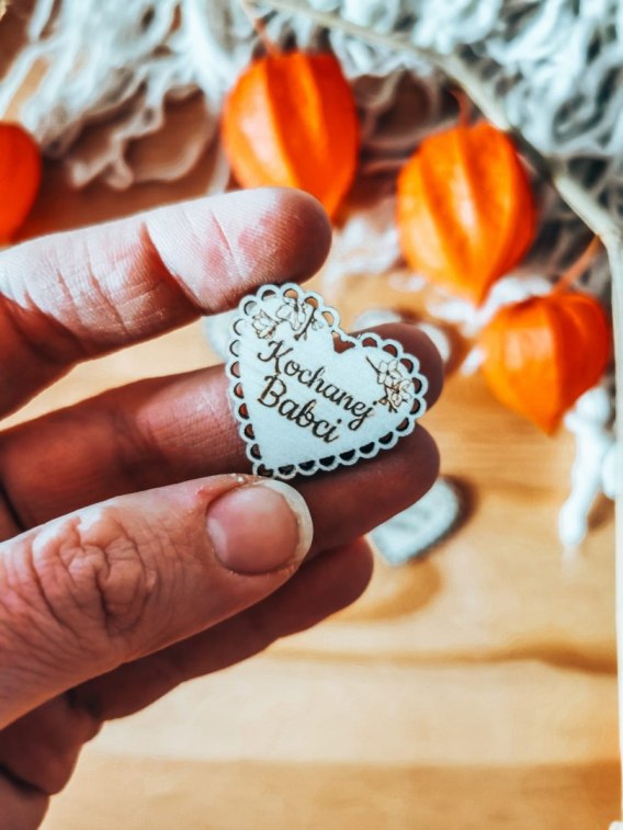 Drewniane serduszko z napisem, które możesz przykleić lub przywiesić do swoich prac. Polecamy jeśli tworzysz rękodzieło na prezent - m.in. ramki na zdjęcie lub ramki z aniołkiem, makramowe aniołki zawieszki, obrazy hand made, makramy i łapacze snów, kartki okolicznościowe wykonywane metodą scrapbooking, czy inne dzieła ręcznie robione.