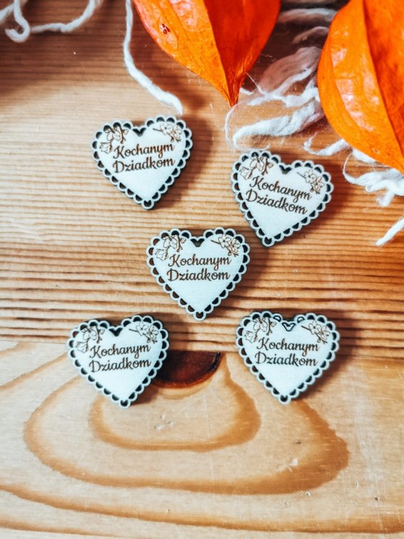 Drewniane serduszko z napisem, które możesz przykleić lub przywiesić do swoich prac. Polecamy jeśli tworzysz rękodzieło na prezent - m.in. ramki na zdjęcie lub ramki z aniołkiem, makramowe aniołki zawieszki, obrazy hand made, makramy i łapacze snów, kartki okolicznościowe wykonywane metodą scrapbooking, czy inne dzieła ręcznie robione.