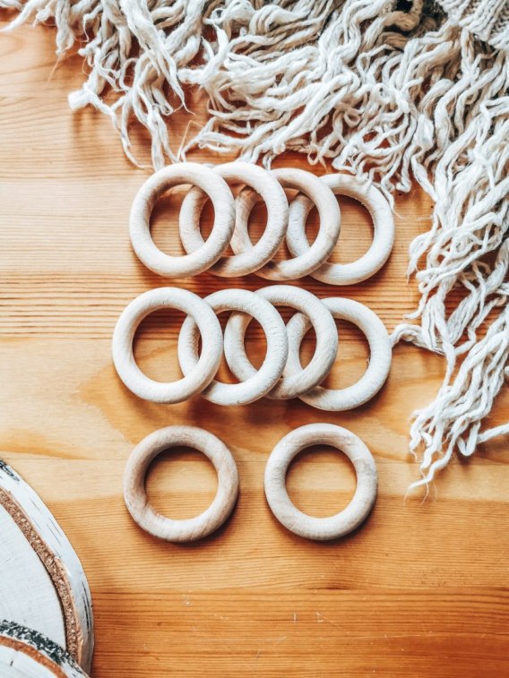 Kółka drewniane 45mm (10szt) - (kółko do makramy kwietnika, kółka, pierścienie na kwietnik, pierścień na głowę głowa aniołka ani