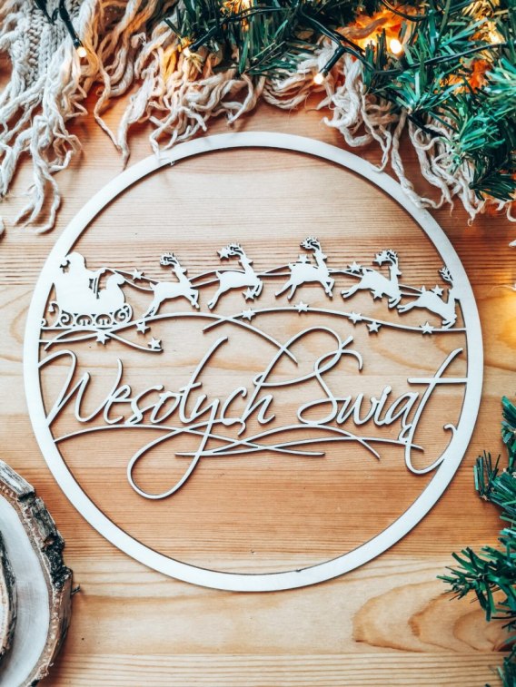 Drewniane koło z klimatycznym, świątecznym motywem świetnie sprawdzi się przy tworzeniu bożonarodzeniowych dekoracji - makramy, makatki, łapacza snów, kalendarza adwentowego, wieńca czy innej ozdoby domu lub drzwi.
