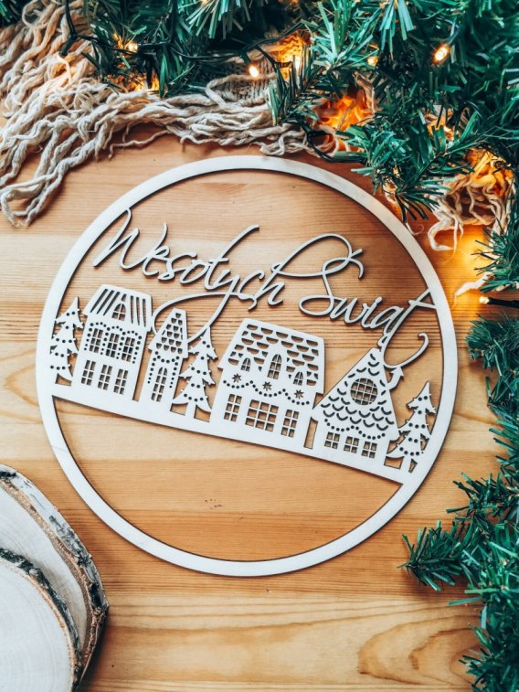 Drewniane koło z klimatycznym, świątecznym motywem świetnie sprawdzi się przy tworzeniu bożonarodzeniowych dekoracji - makramy, makatki, łapacza snów, kalendarza adwentowego, wieńca czy innej ozdoby domu lub drzwi.