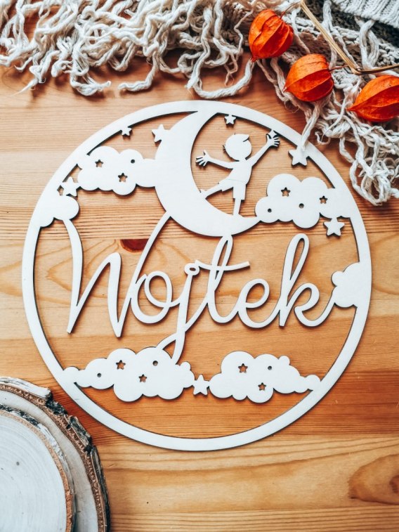Drewniane koło z wyciętym tematycznym wzorem oraz Twoim tekstem. Może zostać wykorzystane jako samodzielna dekoracja na ścianę lub element większej kompozycji. Świetnie sprawdzi się przy tworzeniu stylowych makram, makatek łapaczy snów lub wianków.