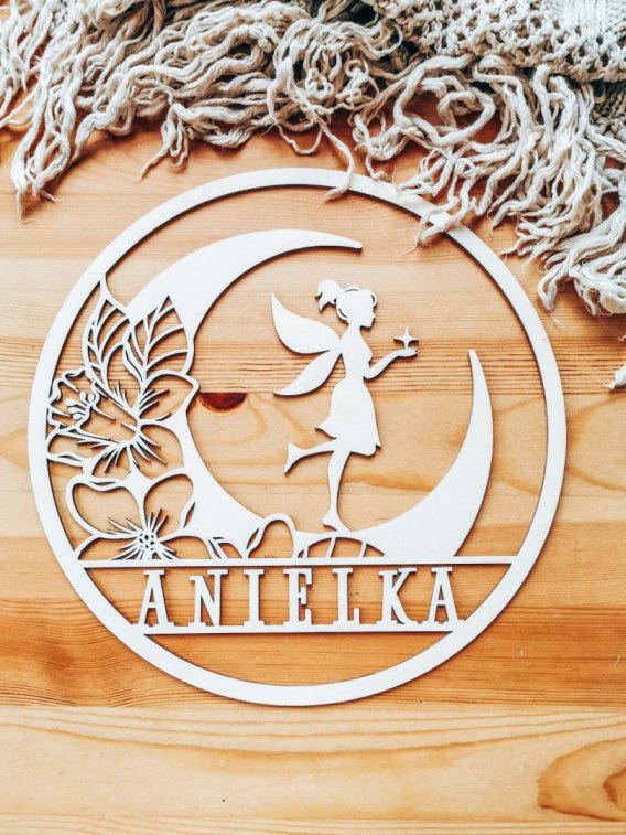 Koło z imieniem - wróżka - (obręcz imienna z wróżką z księżycem, księżyc)