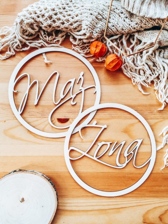 UWAGA! 1szt w koszyku = 1 koło z wybranym napisem. Jeśli potrzebujesz 2 kół z napisem mąż oraz żona - dodaj produkt do koszyka dwa razy (oddzielnię mąż, oddzielnie żona) lub dodaj do koszyka 2szt ale koniecznie dopisz w uwagach aby były dwa różne napisy.