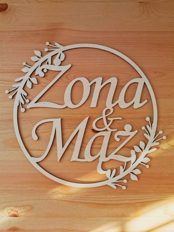 Drewniana obręcz z wyciętym tekstem. Może zostać wykorzystana jako samodzielna dekoracja na ścianę lub element większej kompozycji. Świetnie sprawdzi się zwłaszcza przy tworzeniu ścianki ślubnej za stołem Pary Młodej. Może też służyć do dekoracji krzeseł czy stołu Pary Młodej.