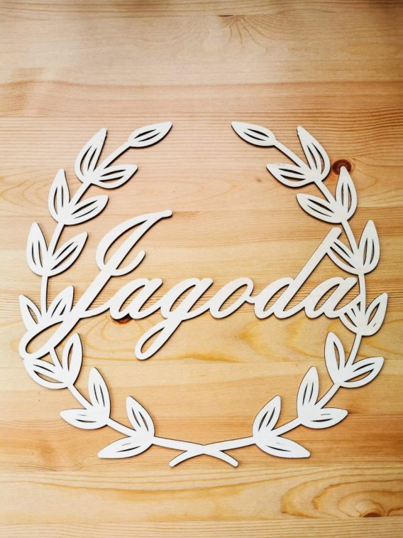 Drewniana obręcz z wyciętym tekstem. Może zostać wykorzystana jako samodzielna dekoracja na ścianę lub element większej kompozycji. Świetnie sprawdzi się zwłaszcza przy tworzeniu ścianki ślubnej za stołem Pary Młodej. Może też służyć do dekoracji krzeseł czy stołu Pary Młodej.
