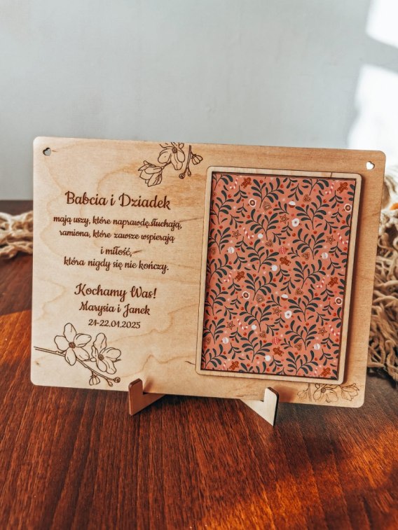 Drewniana ramka na zdjęcie z pamiątkową dedykacją - piękny prezent dla Babci i Dziadka