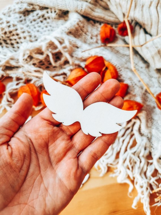 Drewniane skrzydła będą piękną bazą dla wszystkich plecionych i wiązanych aniołków. Zarówno tych małych, jak i dużych. Przeznaczonych jako dekoracja choinkowa lub na prezent z okazji narodzin, urodzin, Chrztu Świętego, I Komunii Świętej, Ślubu, Bożego Narodzenia czy innych ważnych wydarzeń.