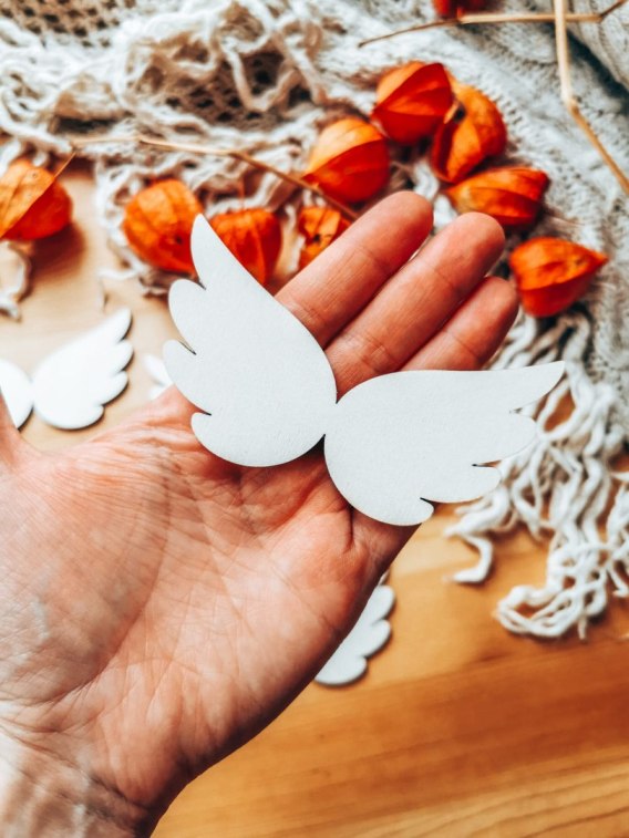 Drewniane skrzydła będą piękną bazą dla wszystkich plecionych i wiązanych aniołków. Zarówno tych małych, jak i dużych. Przeznaczonych jako dekoracja choinkowa lub na prezent z okazji narodzin, urodzin, Chrztu Świętego, I Komunii Świętej, Ślubu, Bożego Narodzenia czy innych ważnych wydarzeń.