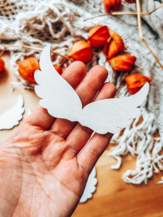 Drewniane skrzydła będą piękną bazą dla wszystkich plecionych i wiązanych wróżek, księżniczek czy aniołków. Zarówno tych małych, jak i dużych. Przeznaczonych jako dekoracja choinkowa lub na prezent z okazji narodzin, urodzin, Chrztu Świętego, Ślubu, Bożego Narodzenia czy innych ważnych wydarzeń.