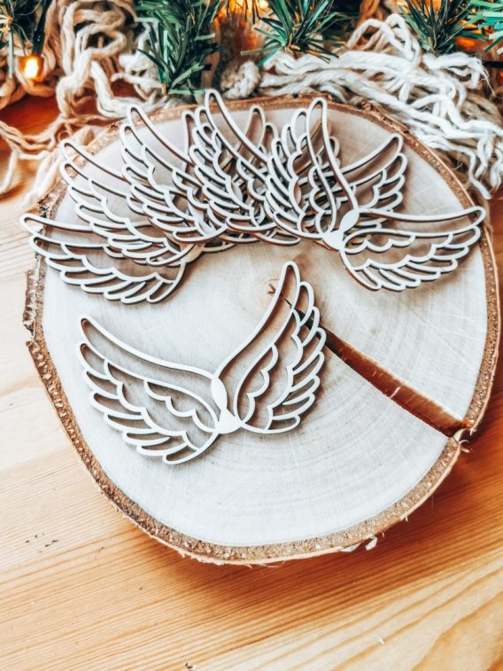Drewniane skrzydła będą piękną bazą dla wszystkich plecionych i wiązanych aniołków. Zarówno tych małych, jak i dużych. Przeznaczonych jako dekoracja choinkowa lub na prezent z okazji narodzin, urodzin, Chrztu Świętego, Ślubu, Bożego Narodzenia czy innych ważnych wydarzeń.