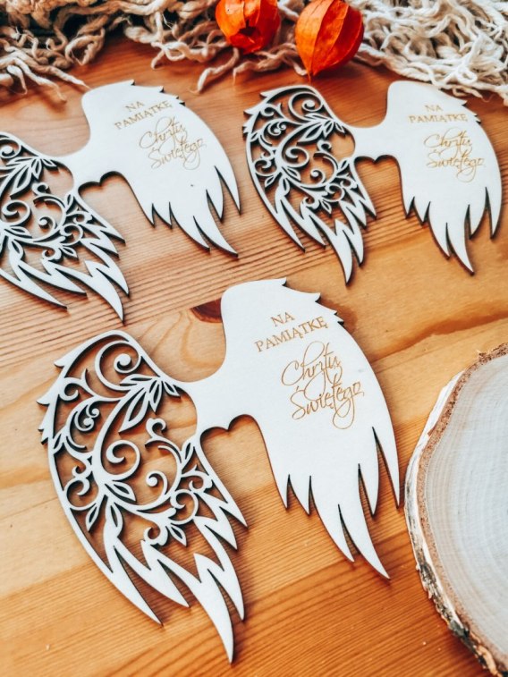 UWAGA! Na tej stronie zamówisz 3 TAKIE SAME ozdoby - skrzydła aniołka z wygrawerowanym tekstem średnie lub duże.