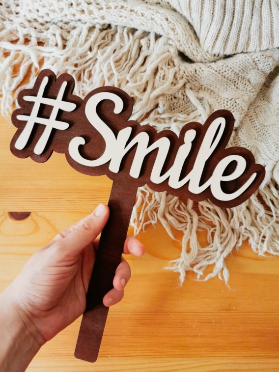 Drewniana tabliczka (1szt) z rączką oraz napisem 3d. Do fotobudki, sesji zdjęciowej.