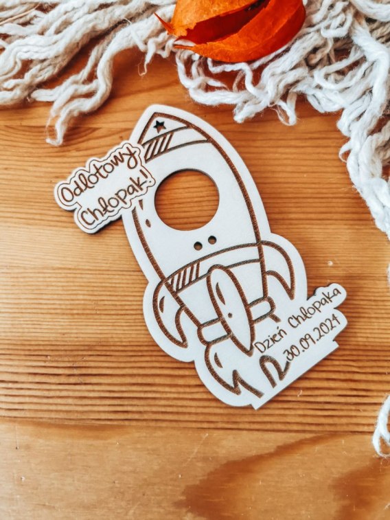 Tabliczka na lizaka - Odlotowy Chłopak RAKIETA (1szt) - z imieniem - - - (zawieszka, podstawka, Dzień Chłopaka)