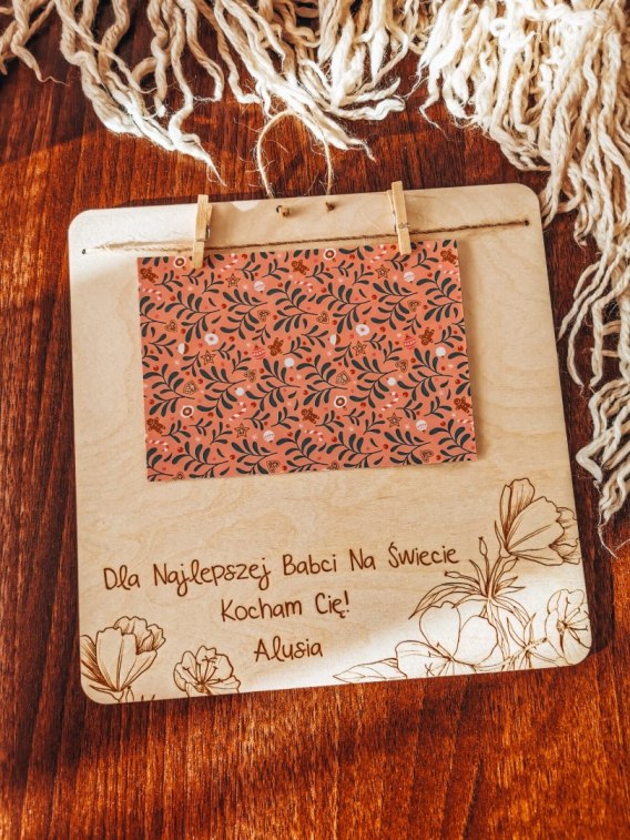 Szukasz czegoś wyjątkowego na prezent dla Babci i Dziadka za ich obecność w życiu Dzieci? Nasza drewniana tabliczka z personalizowaną dedykacją to piękna pamiątka z okazji Dnia Babci i Dziadka, która pozwoli im zachować wyjątkowe wspomnienia na długie lata. Możesz zawiesić na niej zdjęcie lub laurkę. Dziecko może też namalować obrazek lub odbić odcisk dłoni bezpośrednio na drewnie.