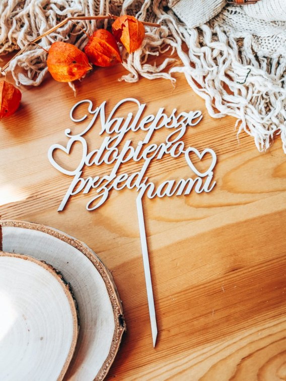 Wymiary: szerokość topera 15-17cm / wysokość napisu (bez szpikulca) proporcjonalna do szerokości (min. 8cm maks. 15cm)