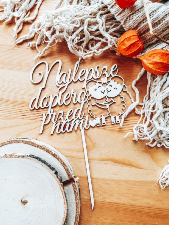 Wymiary: szerokość topera 15-17cm / wysokość napisu (bez szpikulca) proporcjonalna do szerokości (min. 8cm maks. 15cm)