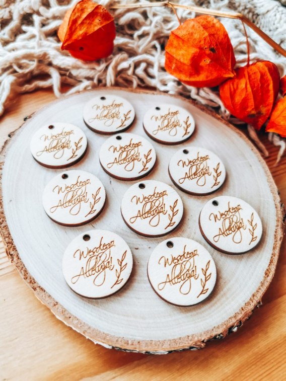 UWAGA: Jeśli potrzebujesz zestawu 10szt zawieszek z dowolnym innym napisem - wpisz swój napis w uwagach. Wyślij nam też wiadomość z numerem zamówienia na Instagramie lub Facebooku, prześlemy tam projekt oraz sprawnie dogadamy szczegóły i ewentualne zmiany.